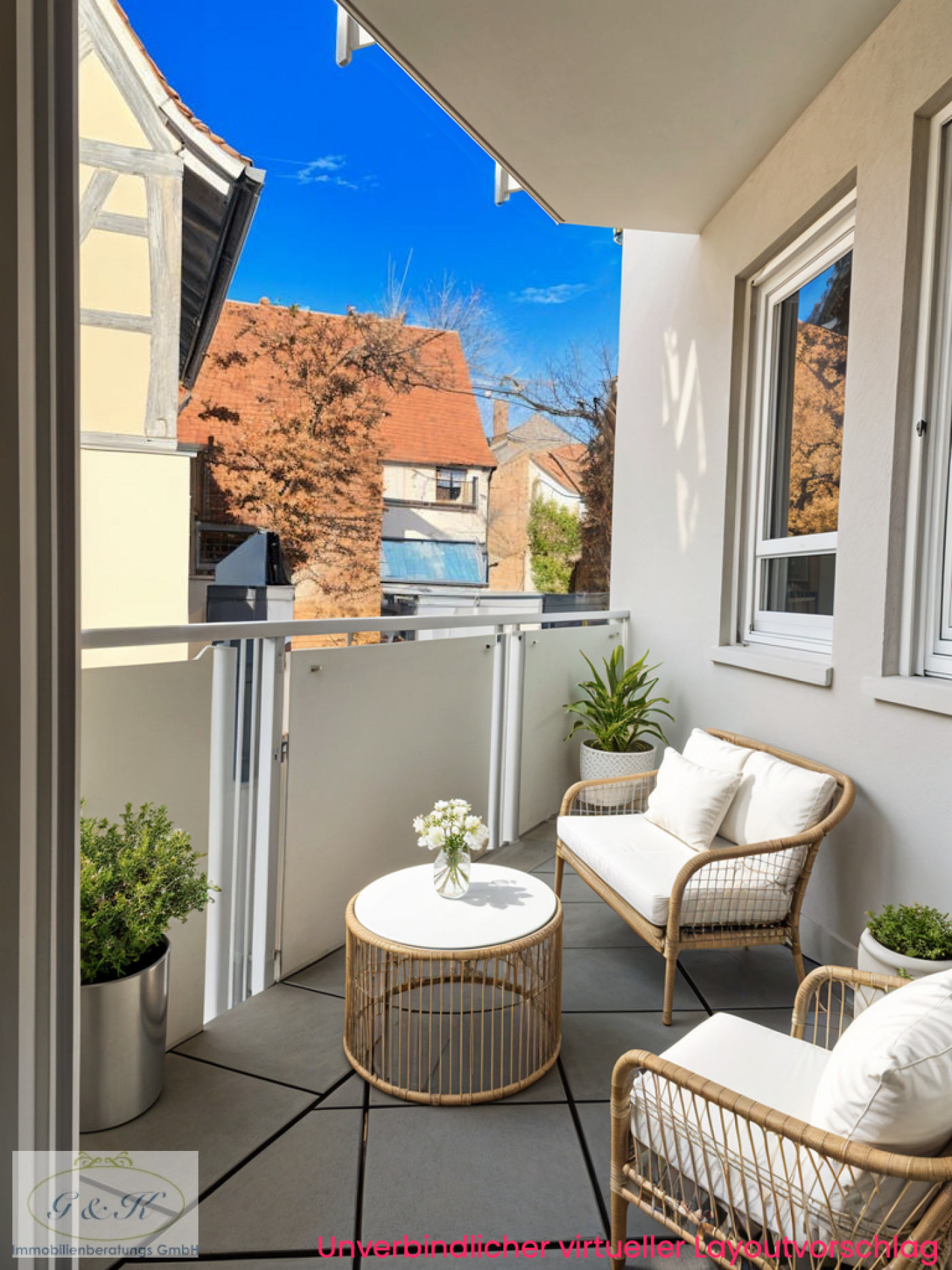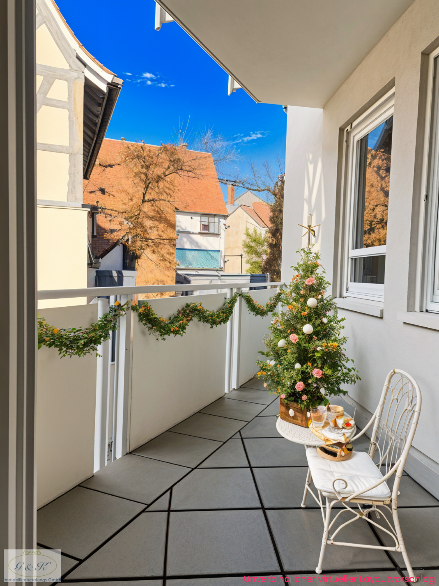 * westliche Ausrichtung von Wohnzimmer und Balkon