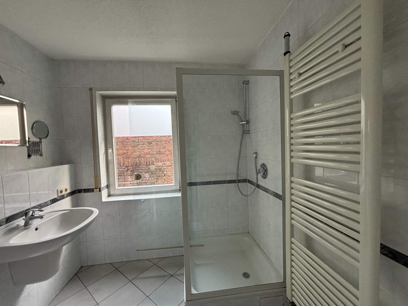 - Ausstattung des Bades Dusche Fenster