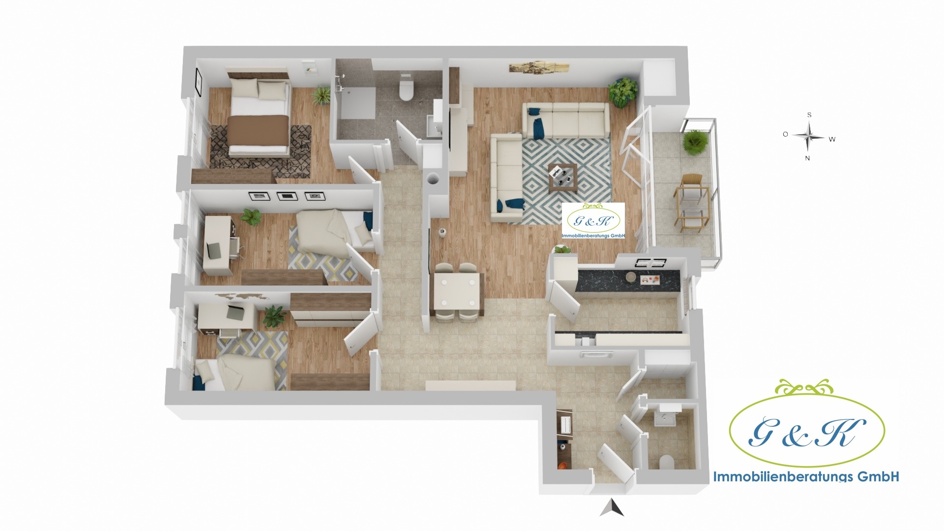 Die 3 Schlafzimmer sind flexibel nutzbar als Kinder-, Gäste- oder Arbeitszimmer.